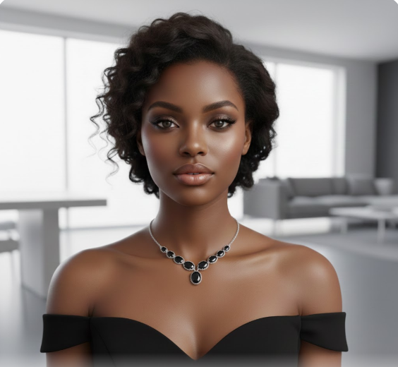 SKS Black Shungite and Russian Diopside Necklace in Platinum
